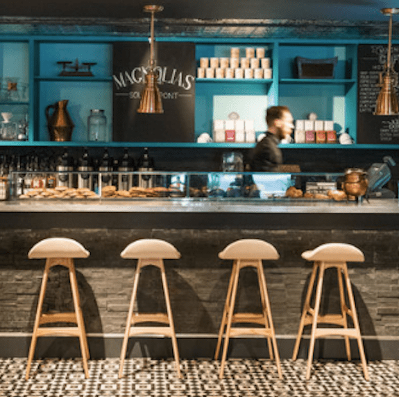 - Magnolias Sous Le Pont- Probably the cutest shop on the list, this shop is hidden in the Harwood District on the side of an office building. The bright turquoise exterior will be sure to catch your eye and peak your curiosity. I love the dim lighting and cozy atmosphere of this space. They make awesome holiday themed drinks here, my favorite was the lavender latte from Valentines Day. Delicious! Cute patio as well for when the weather is nice.
